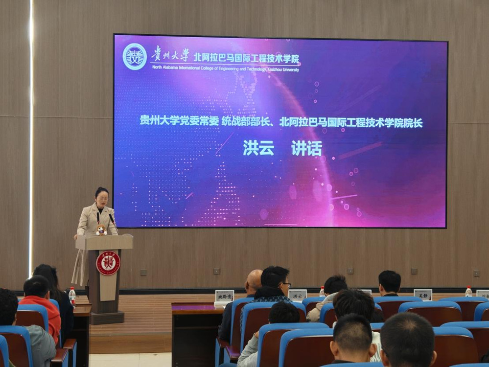 10月23日,北阿拉巴马国际工程技术学院2025级新生见面会在德正楼120会议室举行。美国北阿拉巴马大学副校长、北阿拉巴马国际工程技术学院外方院长Dr. Po Hu,贵州大学党委常委、统战部部长、北阿拉巴马国际工程技术学院院长洪云,院党委书记吴静,正处级组织员姚黔贵,副院长刘敏,院党委副书记帅佳,2025级班主任、包保班主任,2025级本科生、研究生参加。