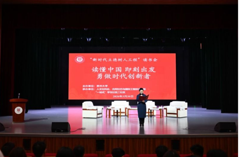 3月30日下午,“新时代立德树人工程”读书会第1期在贵州大学西校区溪山剧场举行。本次读书会以“读懂中国,即刻出发,勇做时代创新者”为主题。校党委书记杨未、校党委副书记彭洁、副校长陈艳波出席活动。北京师范大学教授、中国文化国际传播研究院副院长、“看中国·外国青年影像计划”主要制片人罗军,新华社贵州分社办公室主任欧甸丘,校党委常委、统战部部长、北阿拉巴马国际工程技术学院院长洪云参加。省委宣传部记协秘书处主任李盼盼主持活动。罗军以“他者之眼与自我认知——从‘看中国·外国青年影像计划’看如何向世界讲述中国故事”为题作分享。他指出,该项目旨在让外国青年在真实接触中感知中国,并以跨文化视角展现中国风貌,使国际传播超越了宏大叙事的局限,避免陷入自说自话、传而不通的囹圄。他还结合外国青年导演的创作案例,展现了不同文化背景下的创作理念如何相互碰撞、彼此激发。他认为,讲好中国故事的关键在于尊重文化多样性,要在与“他者...